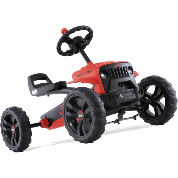 De Jeep Buzzy Rubicon is elk terrein de baas. Met zijn off-road banden, stuur met draaiknop, coole motorkap met gril en markante koplampen lijkt de skelter net op een echte Jeep.