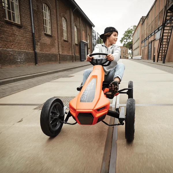 Dankzij de vier wielen biedt de BERG Rally een uitstekende stabiliteit. Dit betekent dat u snel en veilig door scherpe bochten kunt rijden. Kantelen is vrijwel onmogelijk omdat er geen kantelmoment is.