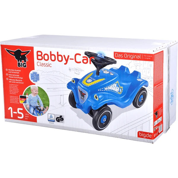 De BIG -Bobby-Car- Class ic Police is gemaakt van hoogwaardige materialen in de modern en BIG fabriek in Duitsland en getest door TÜV volgens de strenge richtlijnen voor geteste veiligheid. Het GS-keurmerk garandeert kwaliteit en veiligheid.