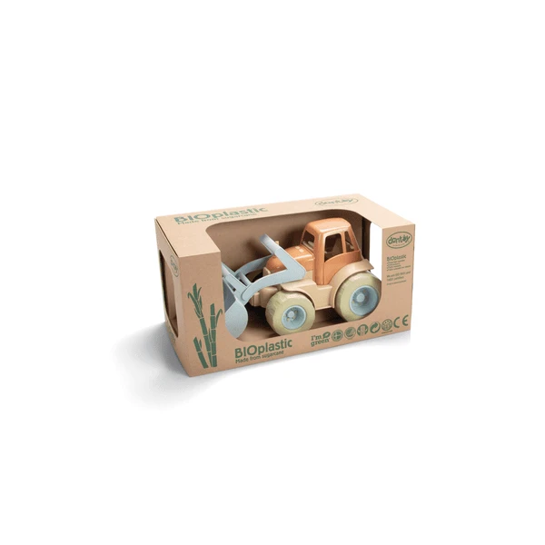 De BIO-tractor wordt in Denemarken gemaakt van bioplastic, een duurzame grondstof die voor 90% uit suikerriet bestaat, en heeft daarvoor de Nordic Swan gekregen.