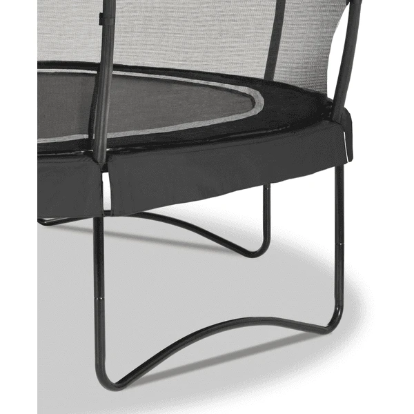De extra lange, dubbelconische veren van maar liefst 21,6 cm zorgen voor de perfecte sprong en een zachte landing. Het gegalvaniseerde en gepoedercoate frame geeft de trampoline een lange levensduur. Ringen van glasvezel en gebogen buizen houden het veiligheidsnet superstrak en de extra dikke beschermrand met een waterafstotende pvc-laag beschermt zowel u als de trampoline optimaal.
