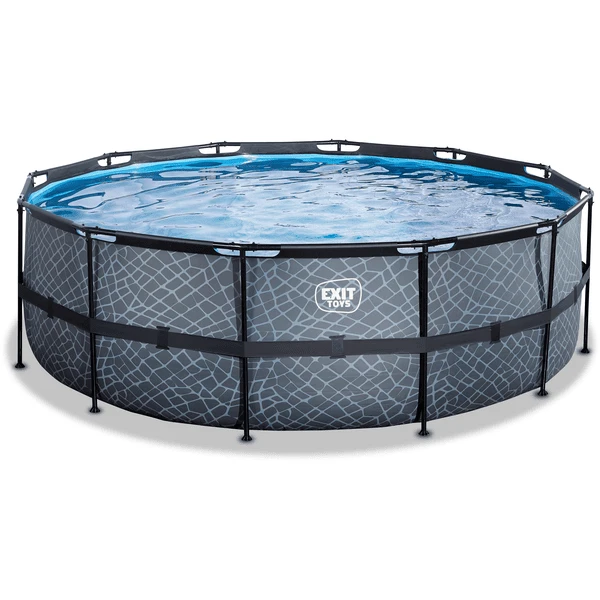 Het geweldige steenpatroon en het zwarte frame geven het zwembad Stone een unieke uitstraling en dankzij de natuurlijke uitstraling integreert het zwembad volledig in uw tuin. De binnenkant van het zwembad is blauw, waardoor je dat frisse zwembadgevoel krijgt. De ronde vorm van het zwembad creëert een gezellige sfeer en zorgt ervoor dat u zich gemakkelijk met meerdere mensen in uw zwembad kunt vermaken. Met de ronde zwembaden van EXIT Toys verveel je je geen moment.