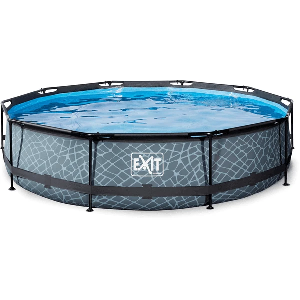 Het grote steenmotief en het zwarte kader geven het Stone zwembad een unieke uitstraling en dankzij de natuurlijke uitstraling integreert het zwembad zich volledig in uw tuin. De binnenkant van het zwembad is blauw, dus je krijgt dat frisse zwembadgevoel. De ronde vorm van het zwembad zorgt voor een gezellige sfeer en maakt het u gemakkelijk om met meerdere personen in uw zwembad te genieten. Met de ronde zwembaden van u zult u zich geen moment EXIT Toys vervelen.