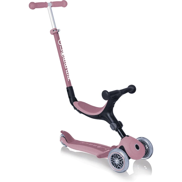 - Eenvoudige, gereedschapsloze ombouw naar driewieler met duwstang, loopwiel en Scoot er