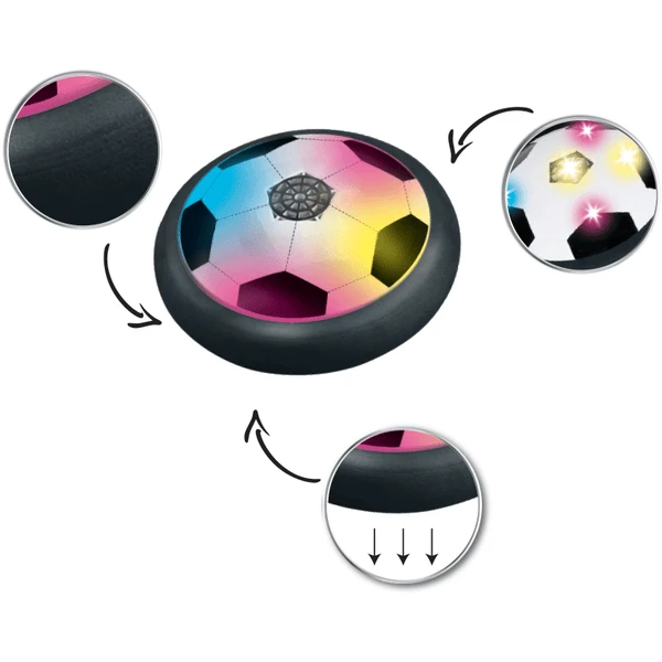 De op een luchtkussen drijvende voetbalschijf staat garant voor snel en opwindend speelplezier en glijdt soepel over elk vlak oppervlak.
