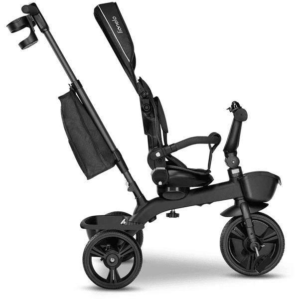 - Driewieler: voorwiel met spatbord, 2x achterwiel, 2x Pedal e, magnesium frame met handvat, stuur en 2 voetsteunen, voetsteun voor kleinere kinderen, afneembare barrière, zitting met bekleding en riemen, zonnekap, bevestigingsschroef zitting, mandje voor stuur, mandje op achterasdeksel voor ouderhouder, 3-punts veiligheidsgordels