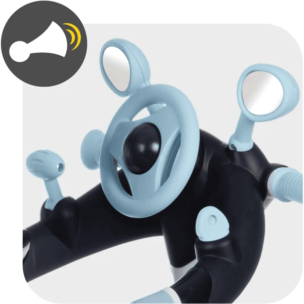 - Afneembare veiligheidsbeugel met speelfunctie zoals achteruitkijkspiegel, claxon en autostuur