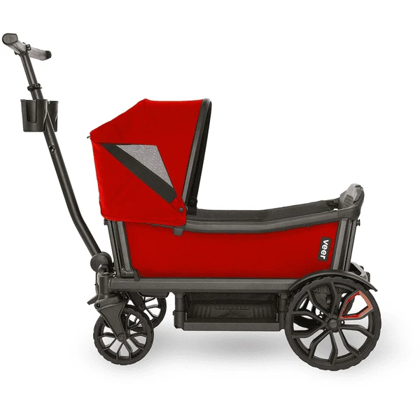De Veer luifel wordt snel en intuïtief aan het frame van de Cruiser bevestigd en is eenvoudig op- en in te klappen. Tot twee zonnekappen kunnen per cruiser worden gemonteerd – één over elke zitplaats. Dankzij het kijkvenster kunt u uw kinderen zien en verborgen magneten zorgen ervoor dat het venster op zijn plaats blijft.